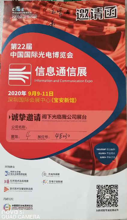 B体育网页版页面登录,将于2020年9月9日~11日参加在广州 第22届 中国国际光电博览会 深圳国际会展中心(宝安新馆)